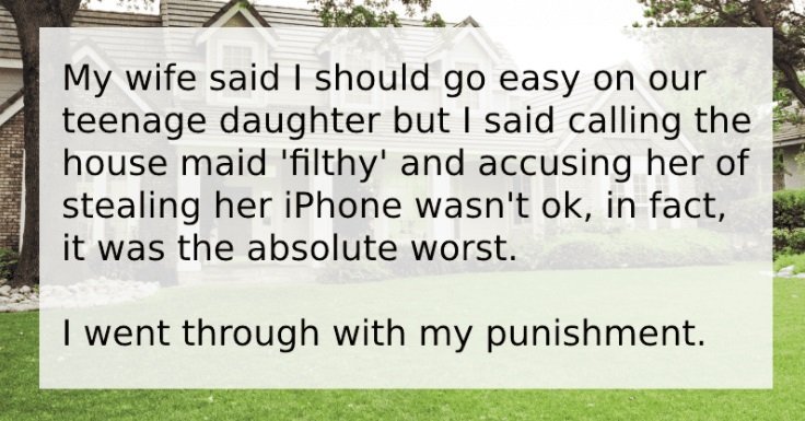 After the daughter disrespects the housemaid, the father insists that she sleep in the backyard and later questions whether his action was mistaken. by Positivityoflife