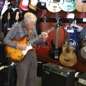 An 81-year-old grandpa walks into a guitar store, picks up one of the guitars, and starts playing to everyone’s amazement.