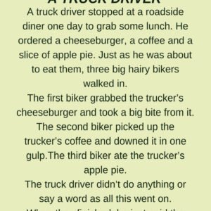 A TRUCK DRIVER A truck driver stopped at a roadside diner one day to grab some lunch. He ordered a cheeseburger, a coffee, and a slice of…