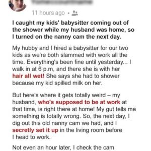I came home one evening to find my children’s nanny stepping out of the shower, her hair still wet. She claimed our daughter had spilled milk on…